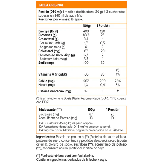 - Única fórmula con 25 gramos de proteína por porción de alta calidad